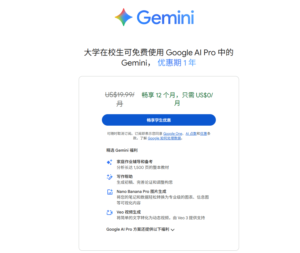 大佬们好!今天要与大家分享一个非常实用的福利——Google One学生试用资格!通过这个福利,你可以获得Google One的12个月免费试用资格,享受更多的存储空间和增强的功能,还有antigravity等开发工具,非常适合需要云存储和增强服务的同学们。下面是获得Google One试用资格的完整指南!