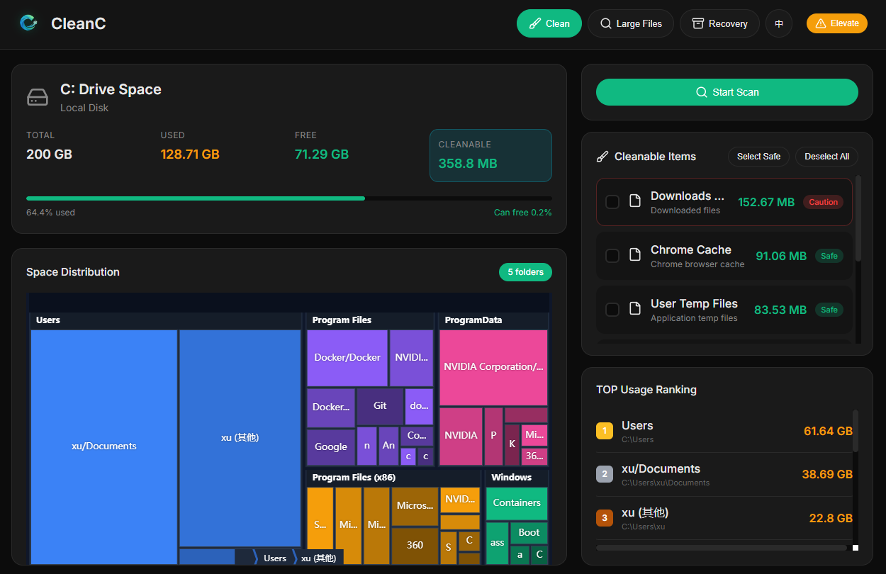 Q:CleanC 会自动删除我的系统文件吗? A: 绝对不会。它只是一个“体检仪”,负责展示空间占用情况,最后的“手术刀”在你自己手里。